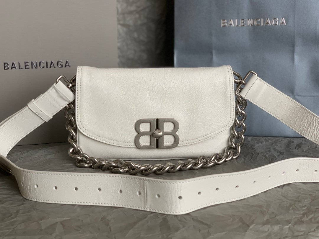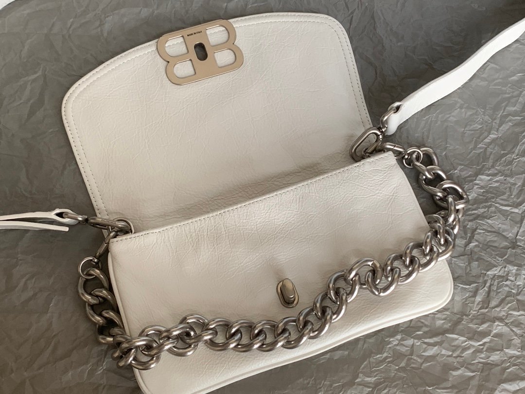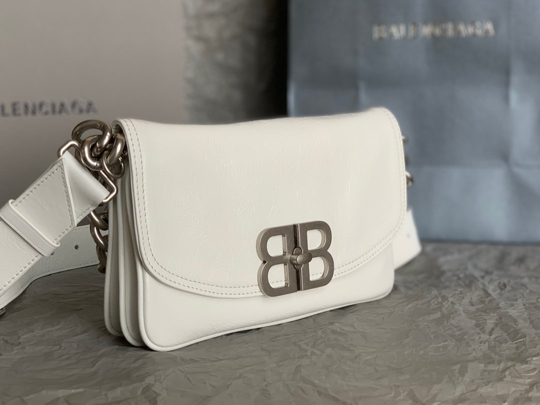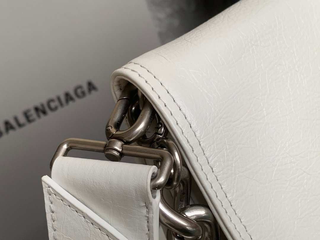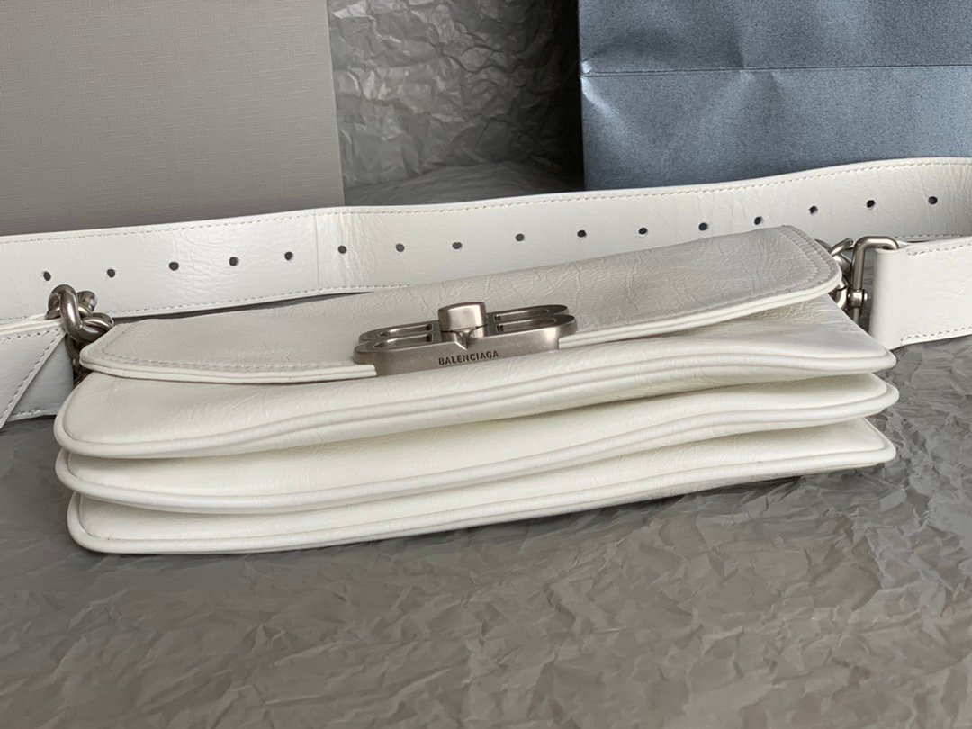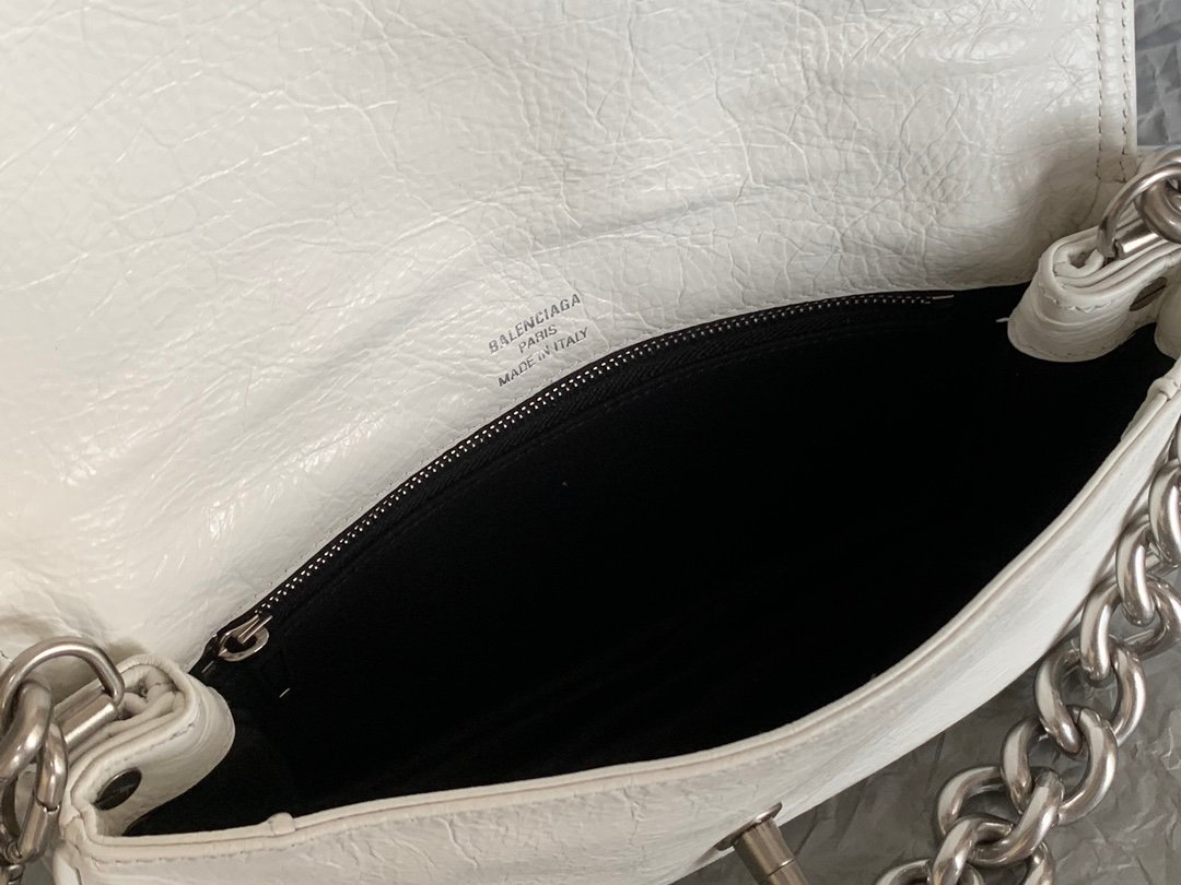 Balenciaga Soft Small Flap Bag in white peach calfskin, aged-silver hardware