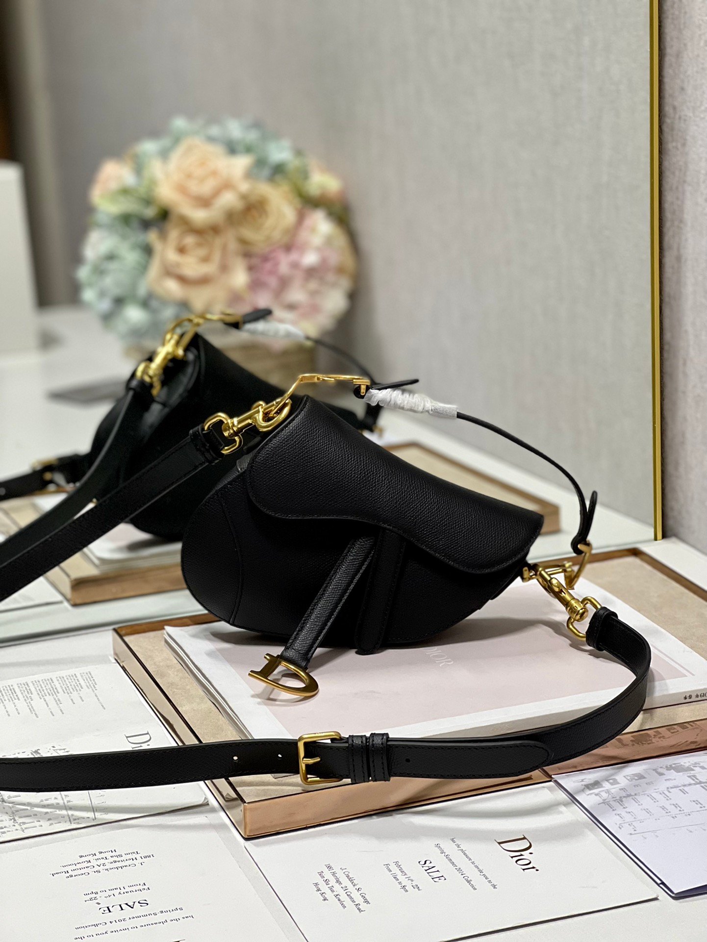 Christian Dior Saddle Bag with Strap Black Goatskin