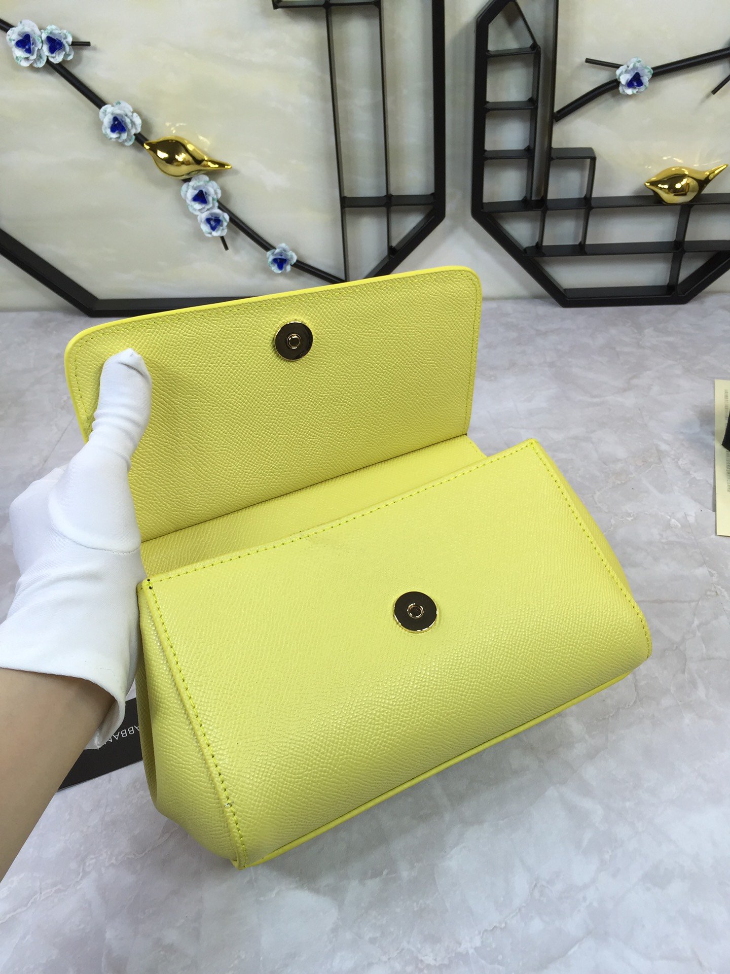 Dolce & Gabbana Lime Yellow Leather Medium Miss Sicily Top Handle Bag