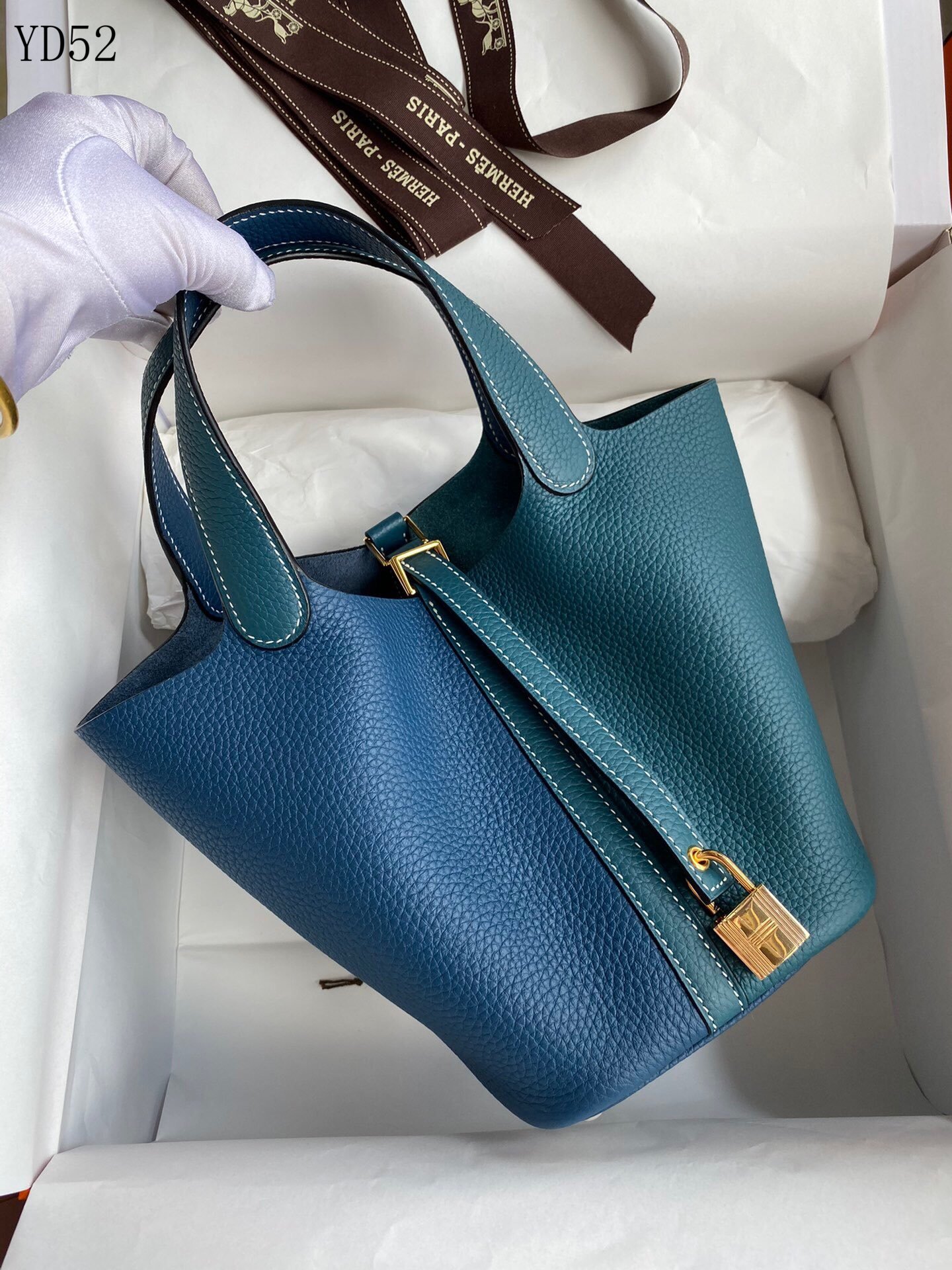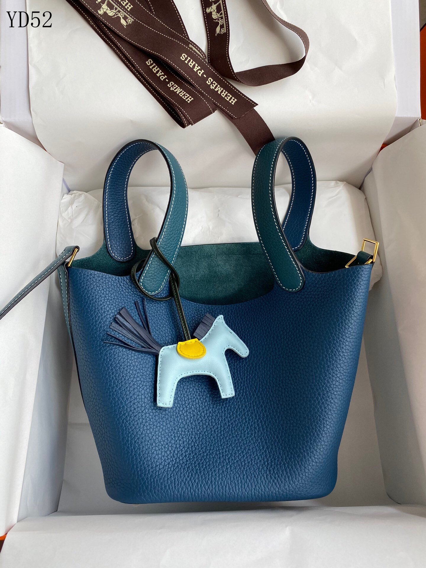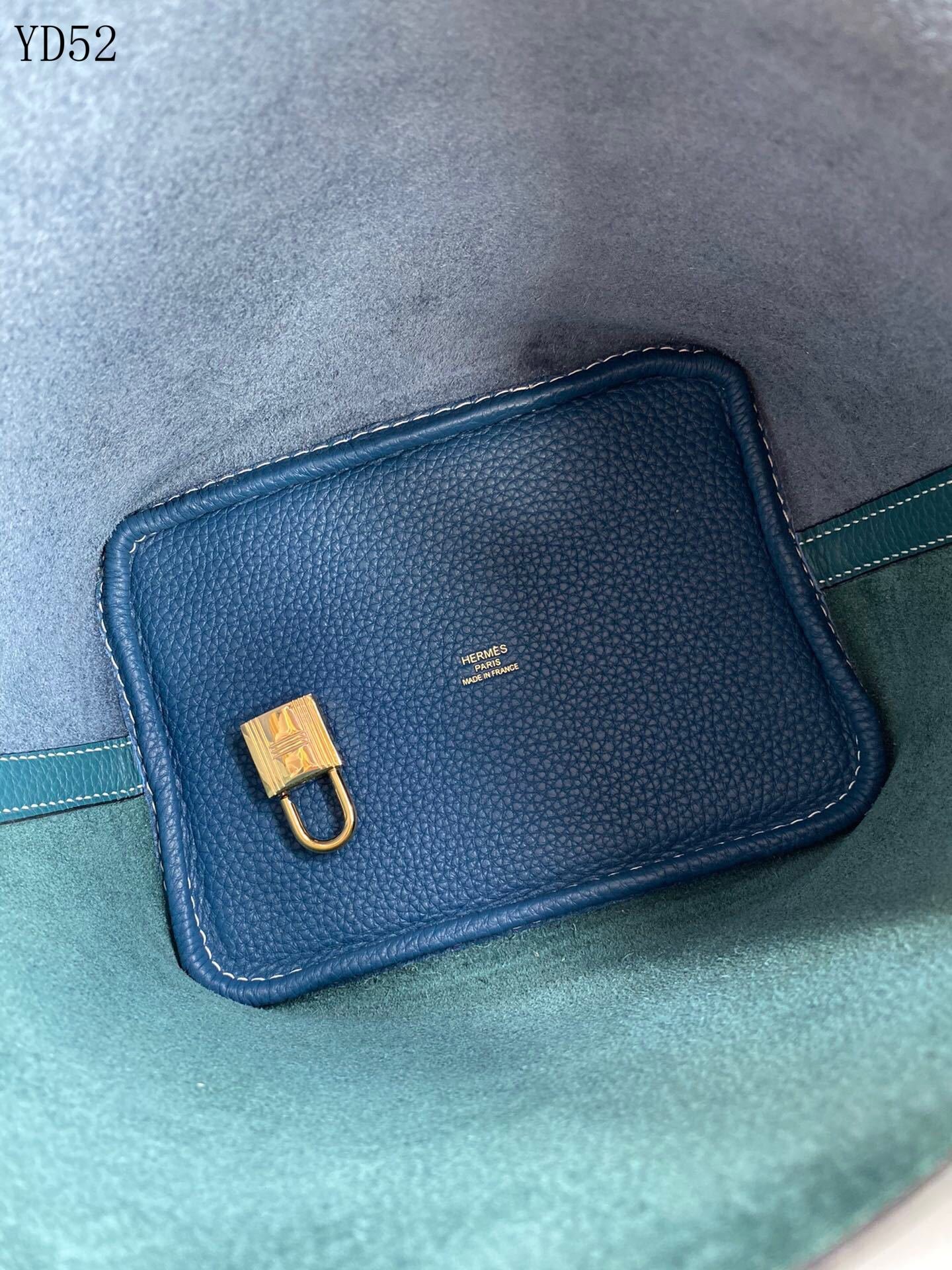 HERMES – Picotin PM Taurillon Clemence Leather Handbag Blue Silver Hardware