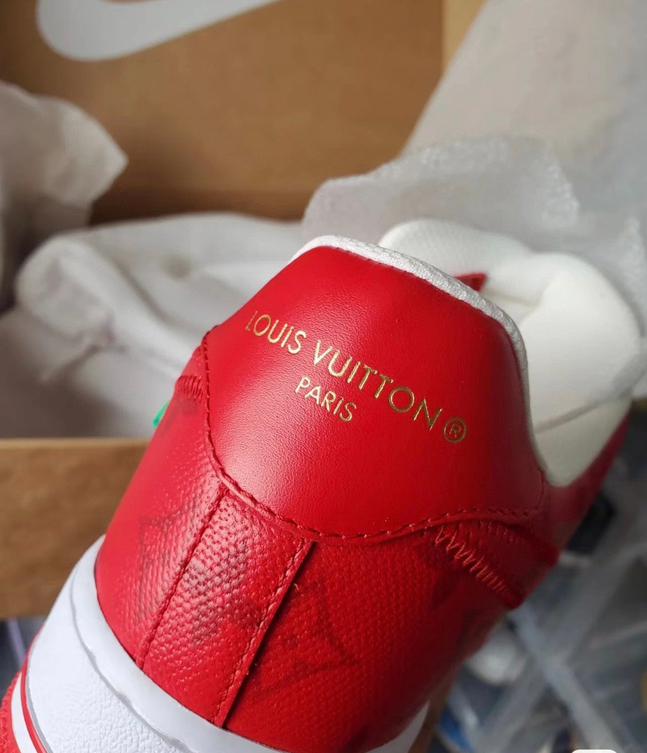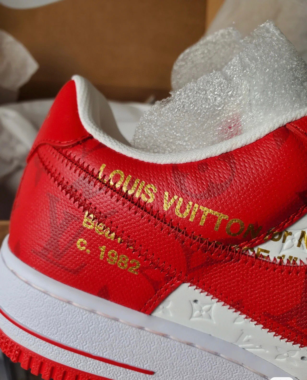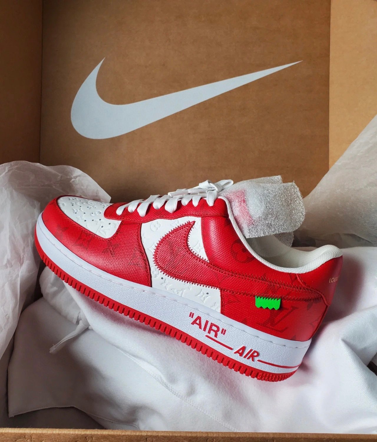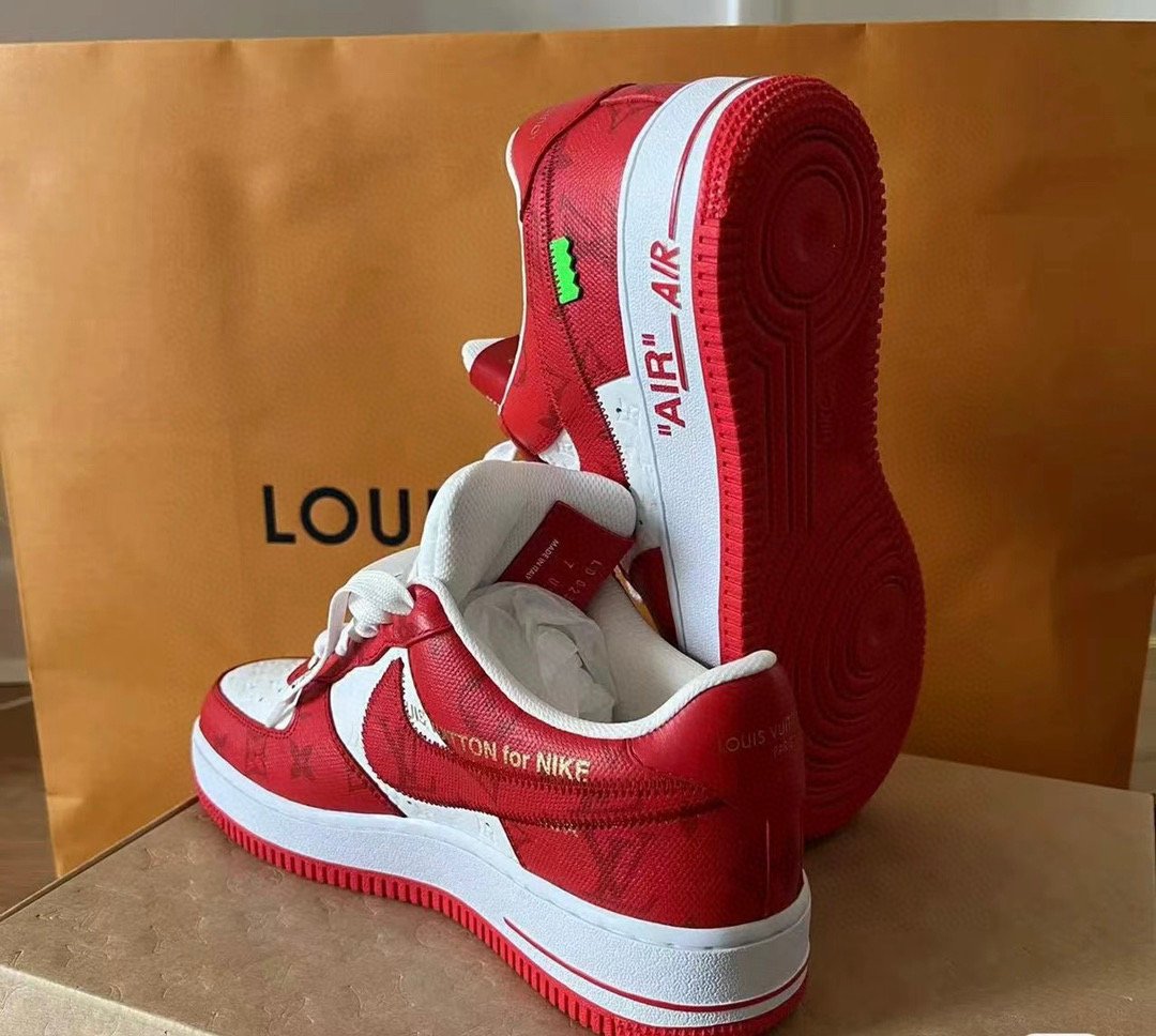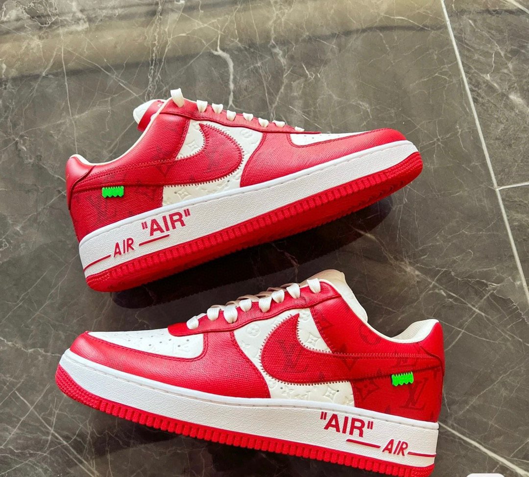 Louis Vuitton X Air Force 1 Calfskin Monogram Mens Sneakers 8 Red