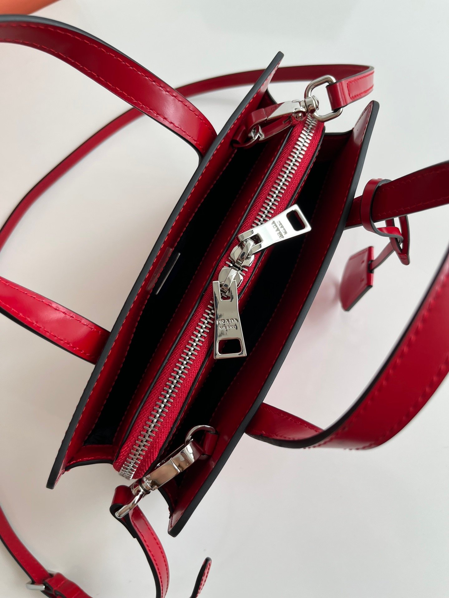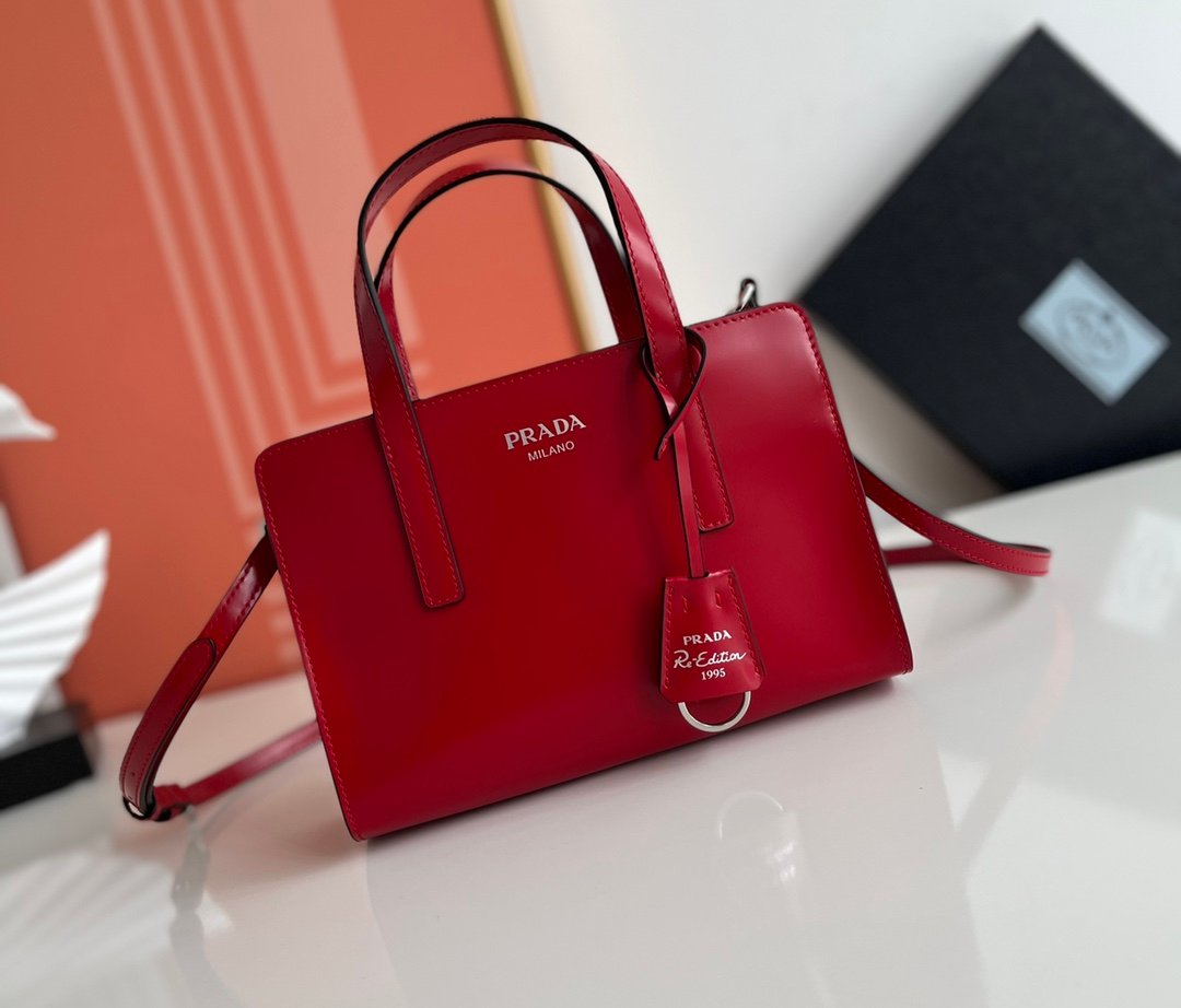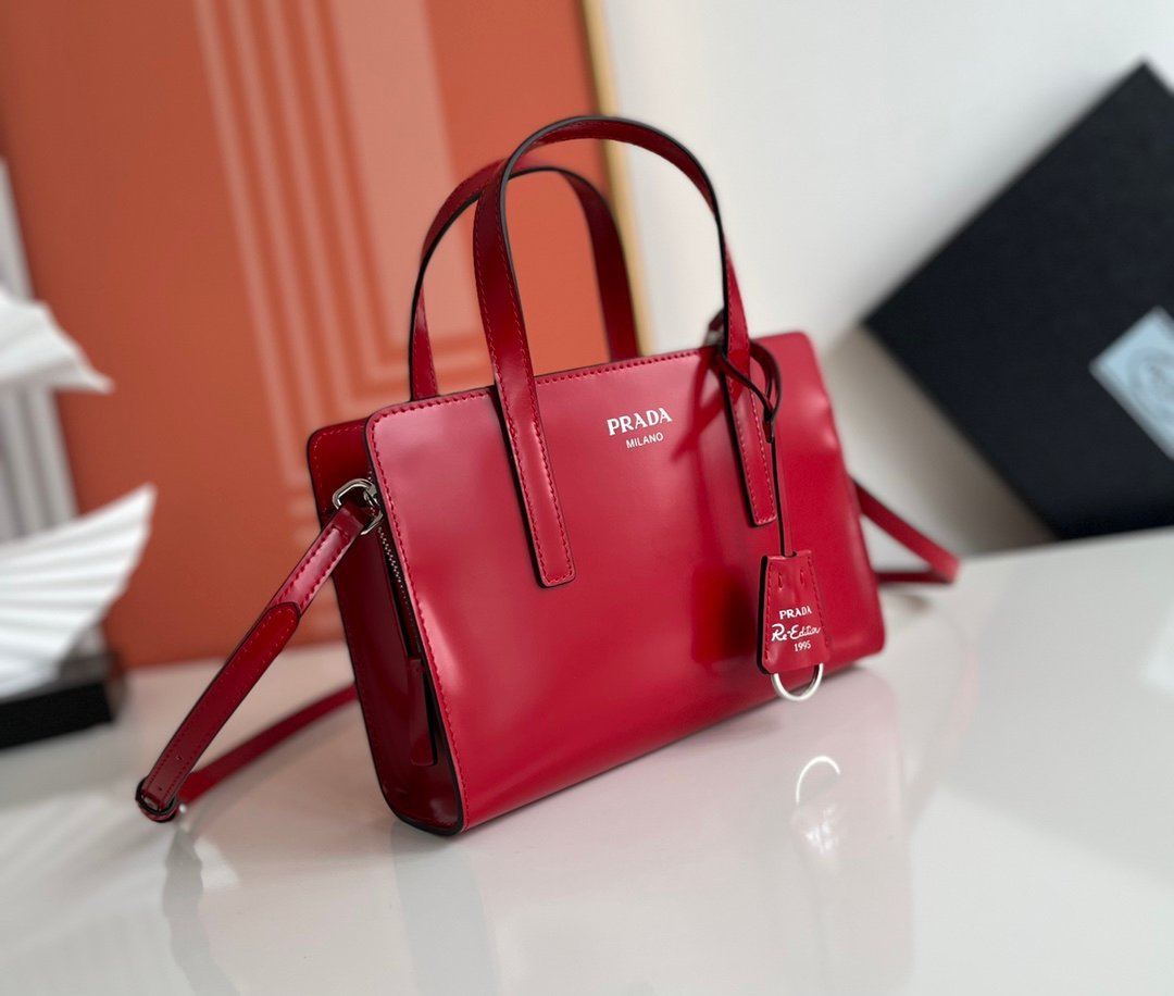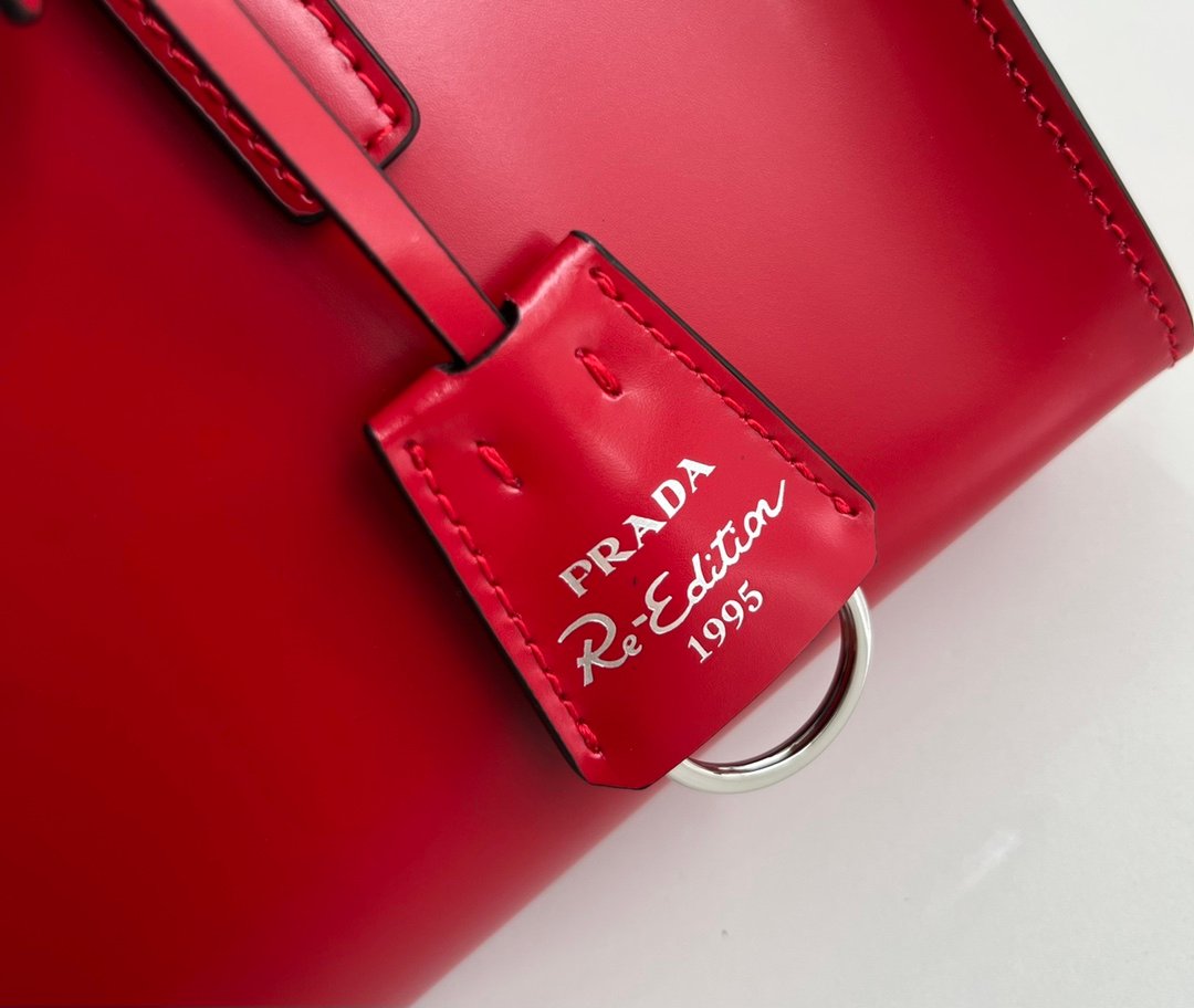 Prada Spazzolato Mini Re-Edition 1995 Double Handle Handbag Scarlatto