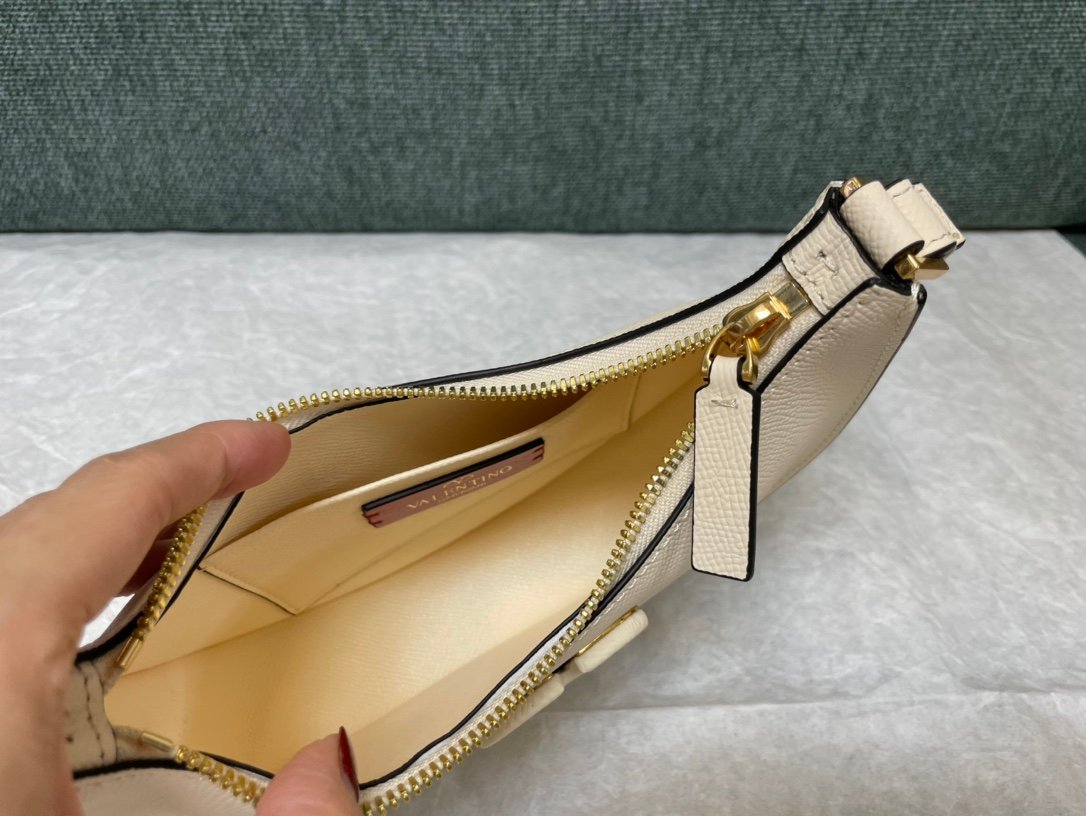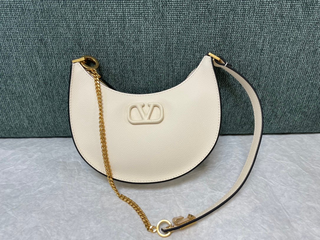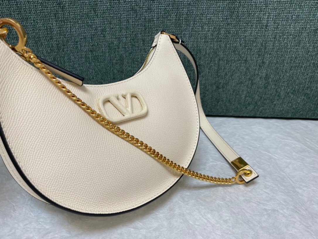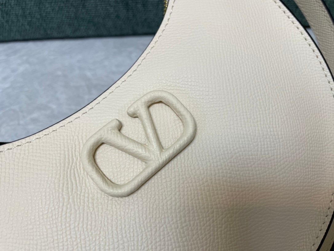 Valentino Garavani Mini VLogo Signature Grainy Calfskin Hobo Bag in White